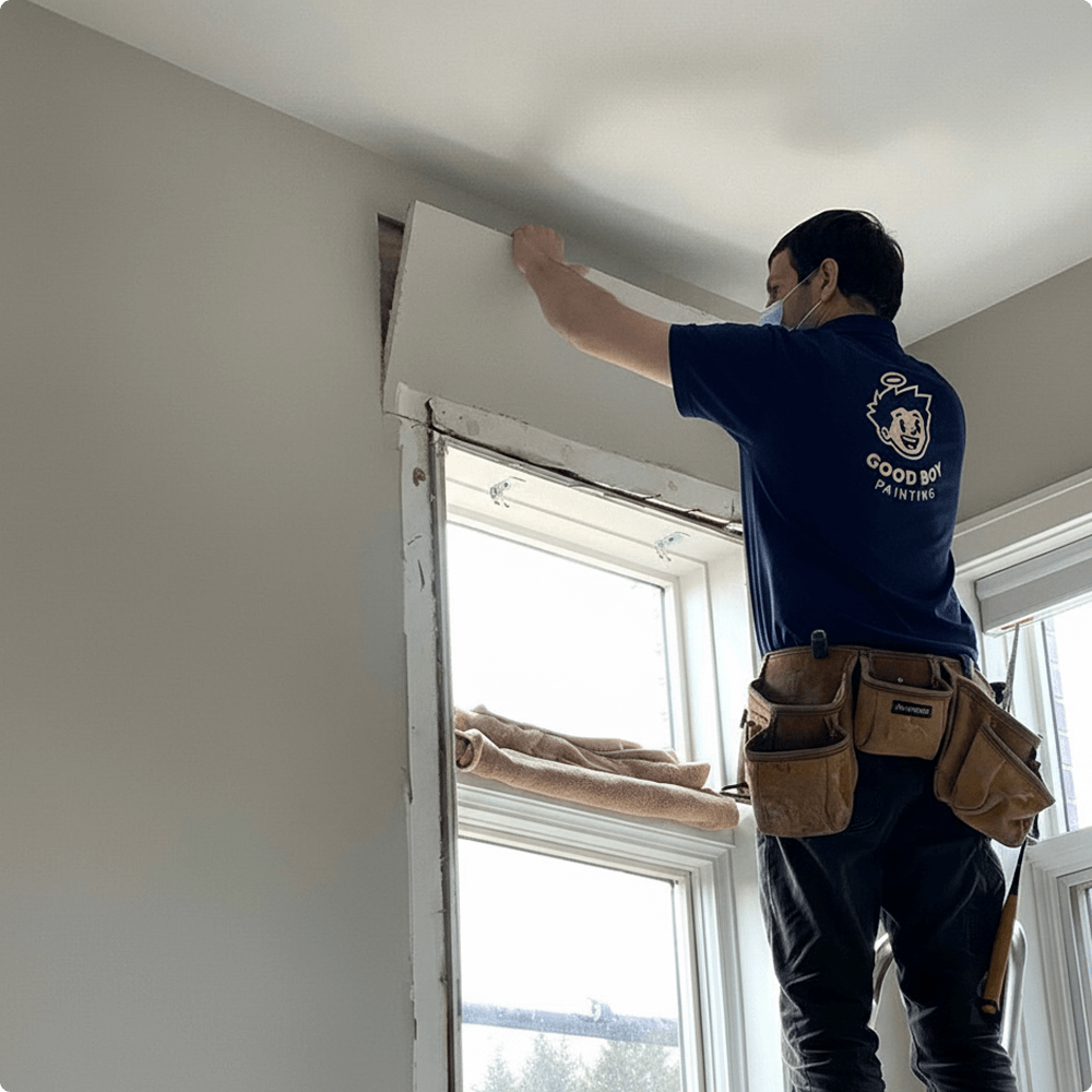 GoodBoy Painters provides drywall repair to fix visible damage and surface imperfections. Whether addressing cracks, holes, or uneven seams, our team restores walls and ceilings to a smooth, uniform condition. Each repair is completed to blend naturally and remain strong under future paint.